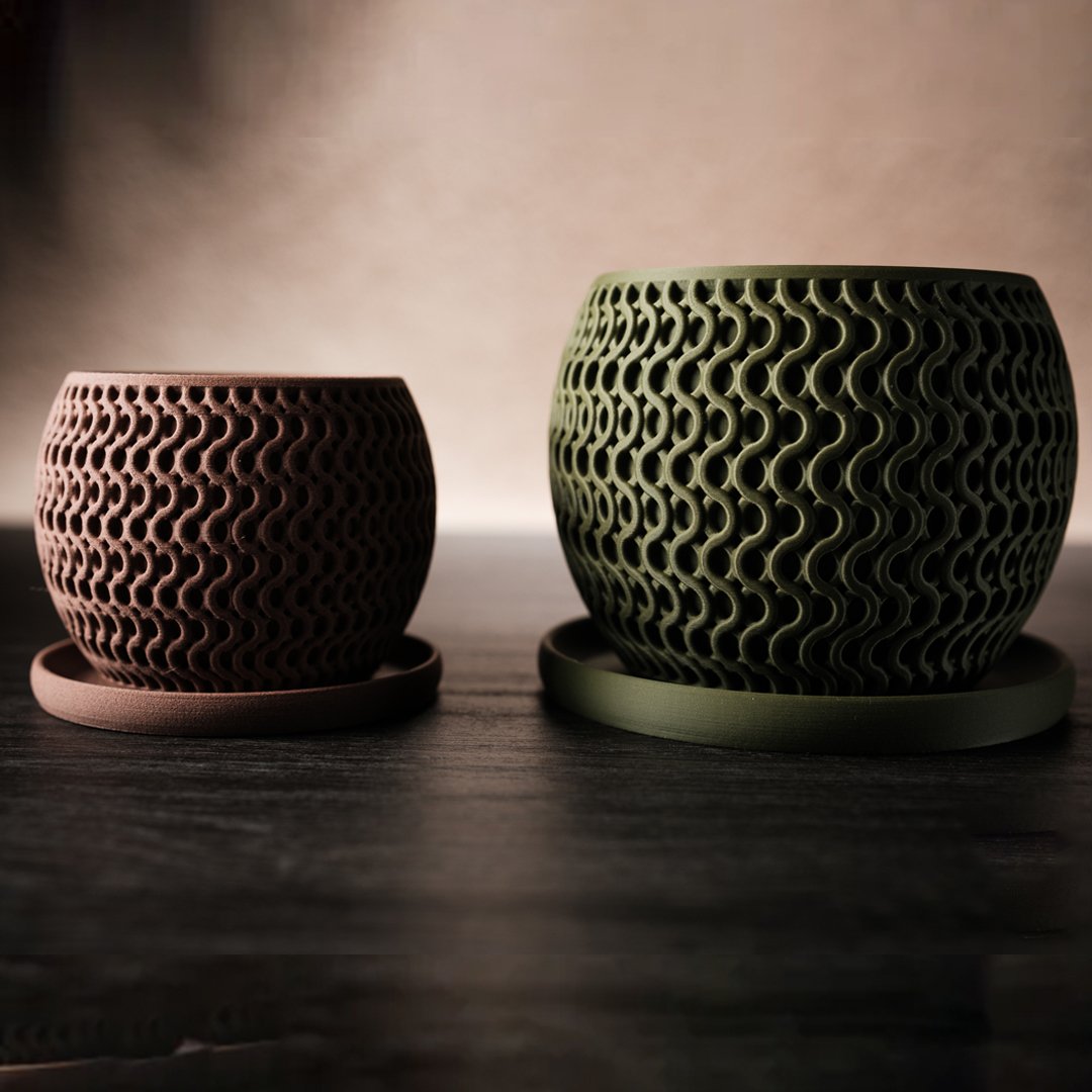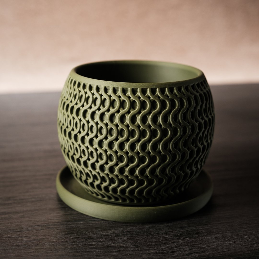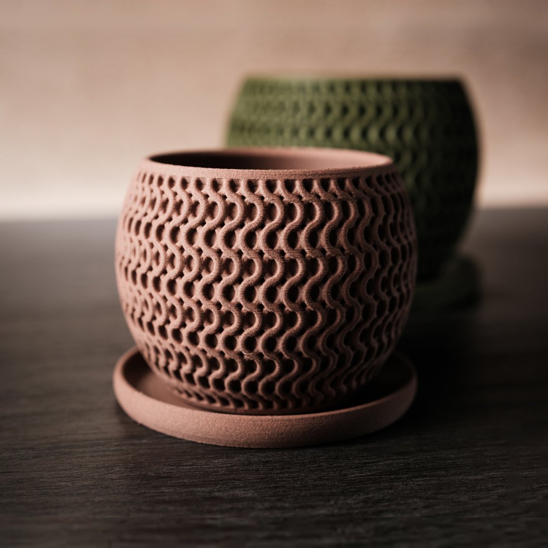 Inspired by smart speaker design, the Echo·Planter is a sleek, cylindrical pot that merges urban minimalism with responsible materials. At 285g and sculpted in standard size, it stands stable, looks sharp, and invites greenery into your digital sanctuary—without wasting plastic or style.